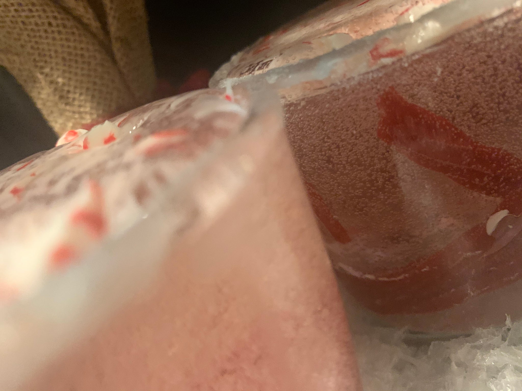 Control your sweet tooth! This mouth watering candle is made with risen and gel wax. Drawing attention to ones eye. Enjoy this peppermint twist with or without the flame.